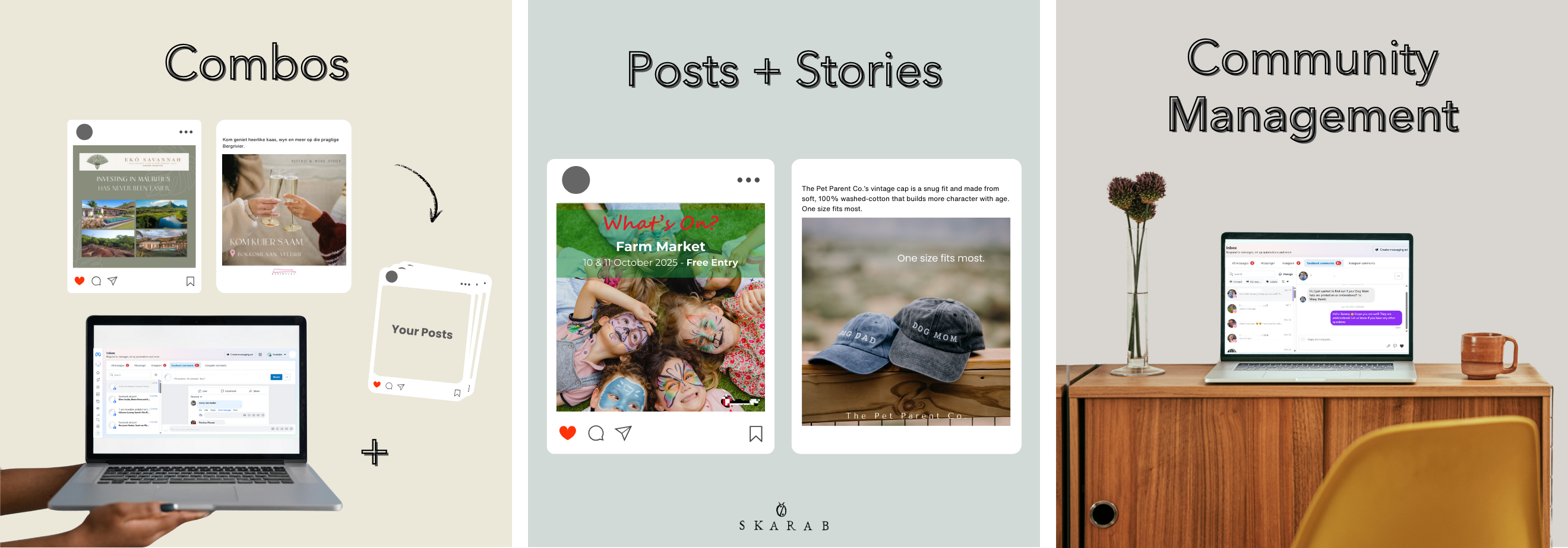 If you’re new, you’ll need to invite us to your Meta Business Suite before your chosen date. It’s easy, see how here: https://skarab.co/pages/how-to-invite-skarab-to-your-facebook-instagram-pages