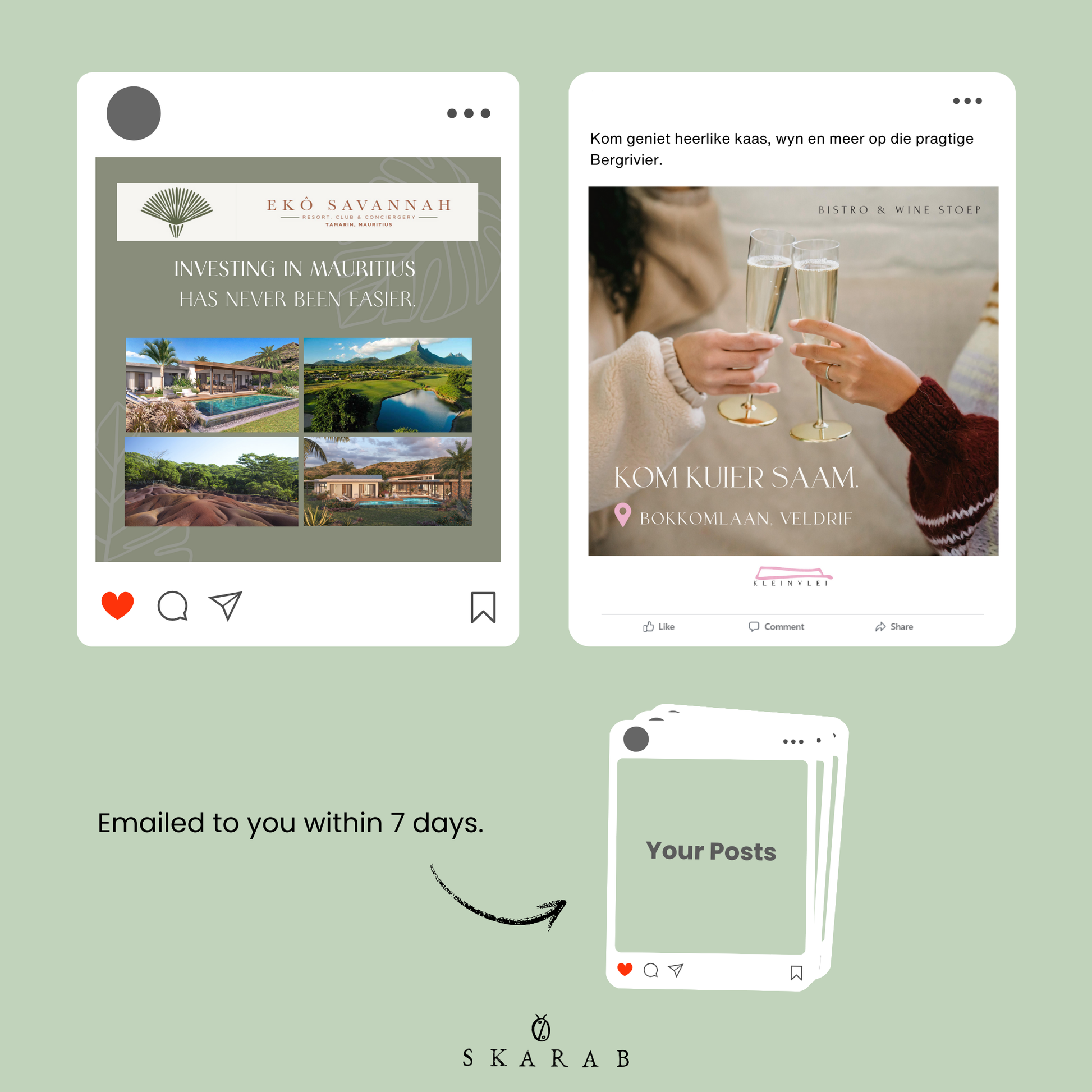 If you’re new, you’ll need to invite us to your Meta Business Suite before your chosen date. It’s easy, see how here: https://skarab.co/pages/how-to-invite-skarab-to-your-facebook-instagram-pages